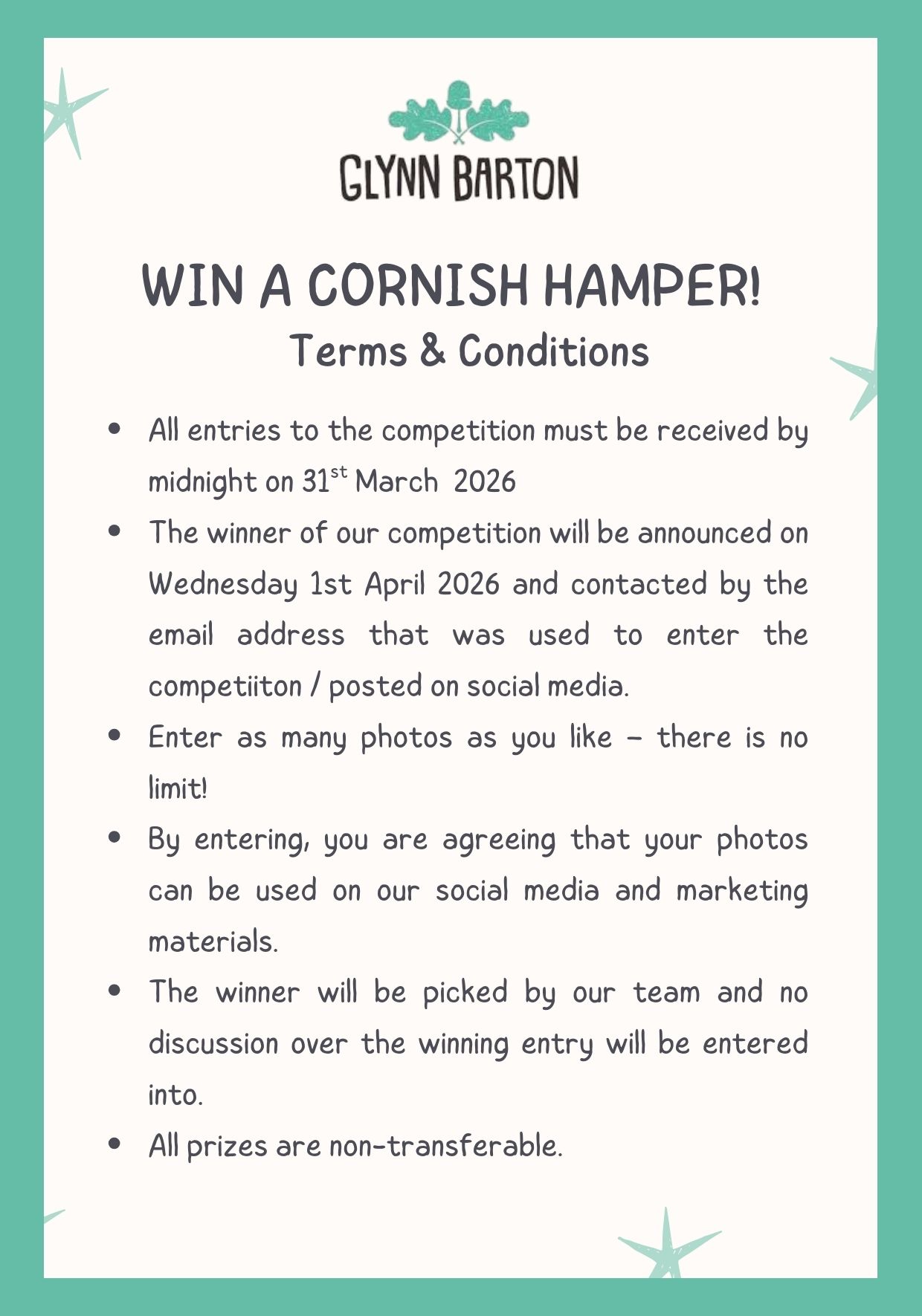 We’re giving away a Cornish Hamper packed with a selection of some of our favourite hand-picked local goodies, your own Glynn Barton hoody, a branded water bottle, Easter treats and more!